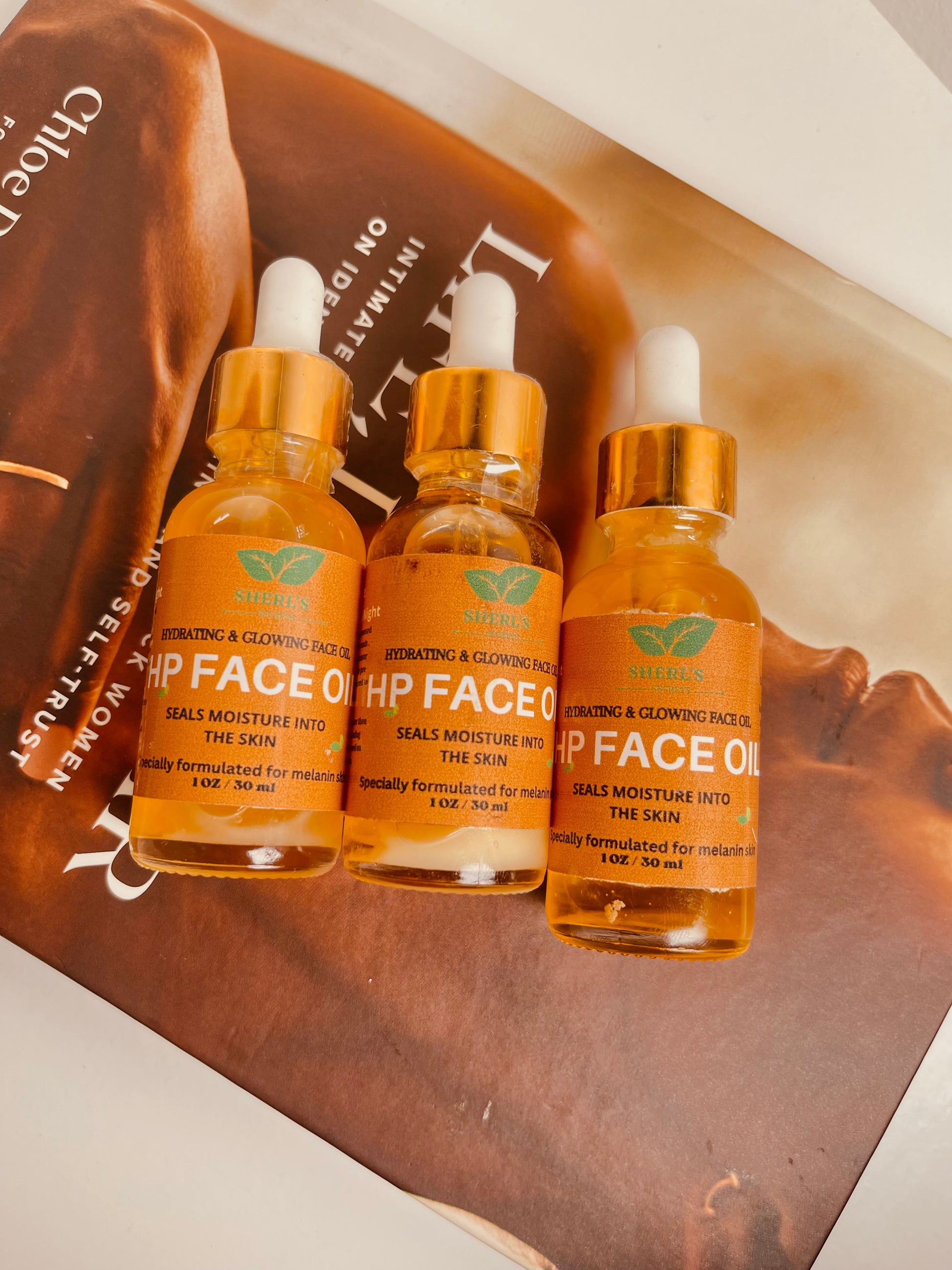 Our HP Face Oil is a lightweight yet deeply nourishing oil designed to seal moisture into the skin while enhancing natural radiance. Specially formulated for melanin-rich skin, it leaves your complexion soft, luminous, and healthy-looking without feeling greasy.